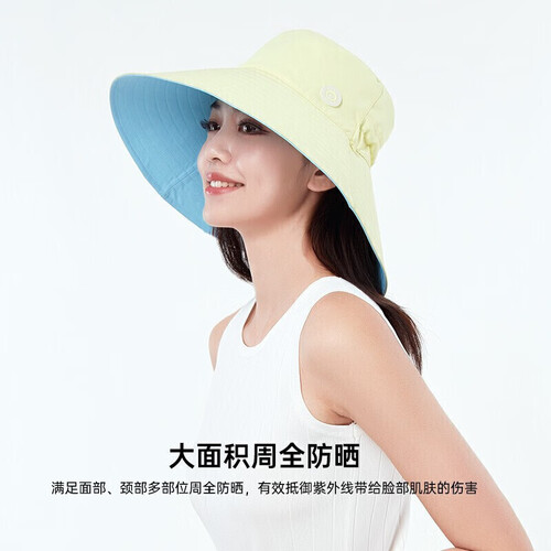 这是一款双面不同色的遮阳帽,丰富搭配性,随心选择,满足不同造型需求,演绎不一样的风格。帽檐很宽大,实现全脸防晒。