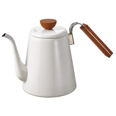 特制细长优雅天鹅颈,柔和水流,稳定易操作,实木防烫手柄,握感舒适,珐琅钢板,精致富有质感,一壶多用,咖啡、茶道皆可用。
