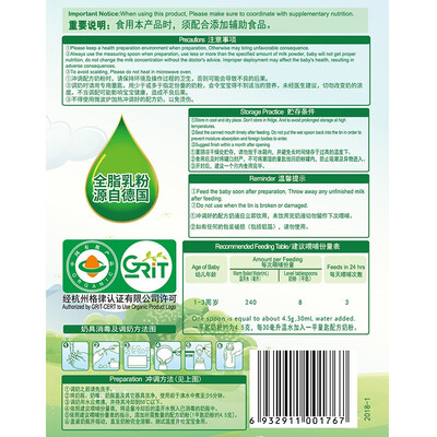 来自德国阿尔卑斯山黄金奶源带,充沛的雨量和肥沃的土壤造就好环境,并且没有农药和重金属污染,是通过中德双重检验的好品质。