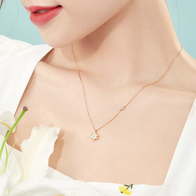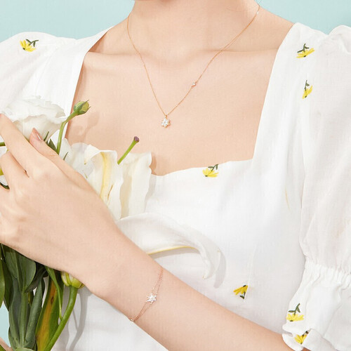 清新文艺的小花造型装饰,搭配裙子或者碎花上衣都很好看。温润的白色贝母搭配优质18K金,质感出众,令人眼前一亮。