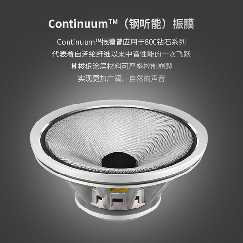 碳膜半球形高音单元,清晰呈现丰富高音细节,尽享高品质音质。Continuum振膜,带来自然中音,听感更出众。