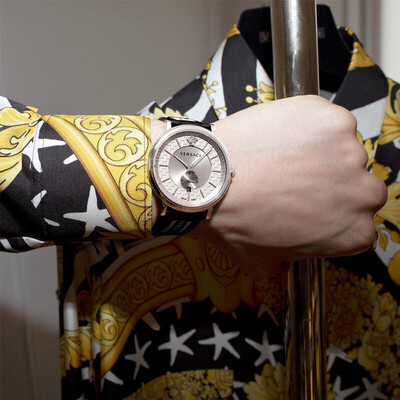 42mm的表壳纤薄简约,结合表盘周围的编织格纹理,佩戴彰显不凡个性,搭配小牛皮表带,柔软材质佩戴更舒适。