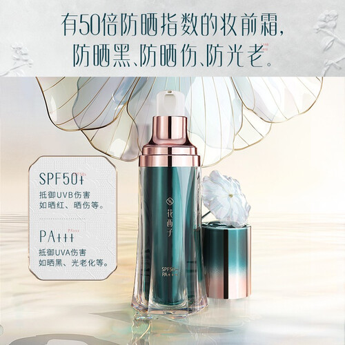 防晒、贴妆、提亮,三效合一,质地清爽不粘腻,轻盈贴合,上妆轻若无感;还添加红花、穗花牡荆提取物,可以抗氧化,改善肌肤暗沉。