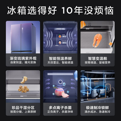 内置智能恒温养鲜系统,定向降温保持冷藏温度恒定,达到食材长久保鲜效果。使用多点离子除菌,全面杀菌,打造绿色存储环境。