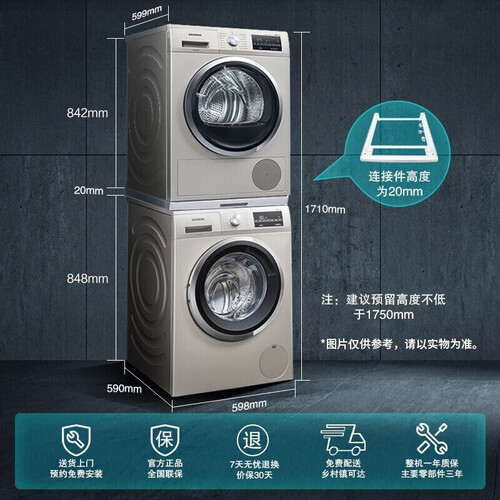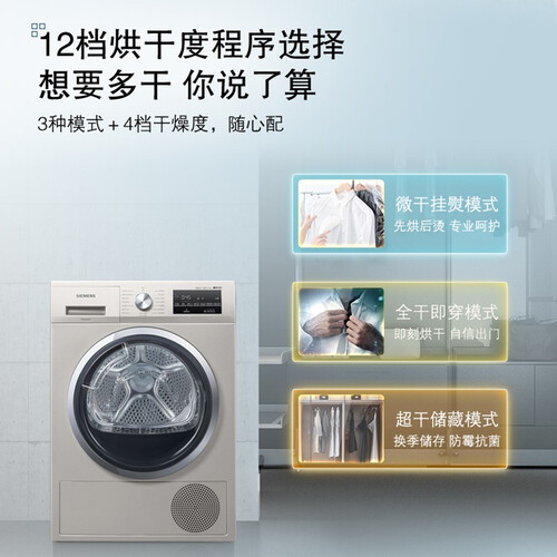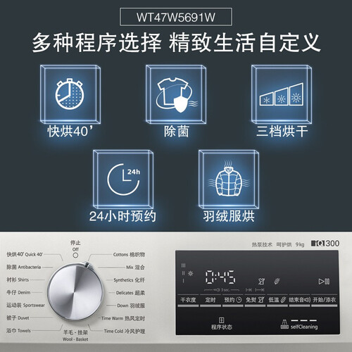 10kg大容量的滚筒洗衣机,不用分开洗涤,可以满足全家人的洗涤需求。9kg进口热泵烘干机,烘干能力出色,衣服蓬松舒适。