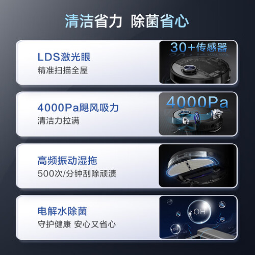 无需添加净菌消毒液,去污同时灭菌,打造健康家居环境;采用三重过滤设计,有效拦截细小颗粒微尘;反复擦拖,提升清洁效率。