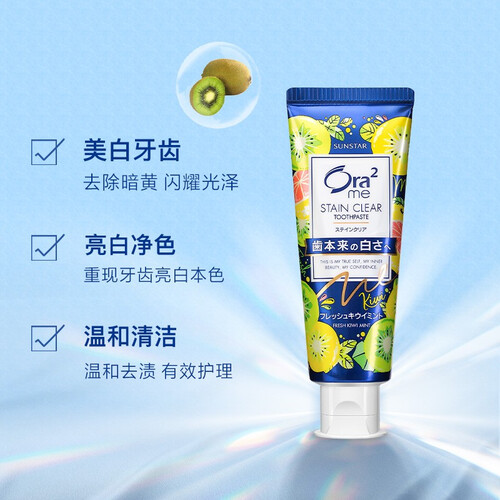 清新猕猴桃薄荷香型,刷起来不会辣嘴。帮助分解色素,去除牙渍污渍,提升牙齿的亮白度。