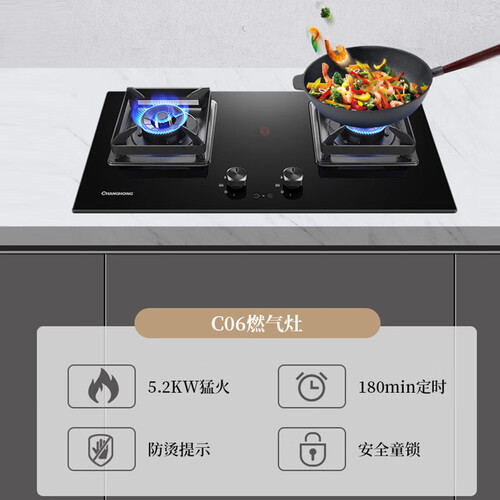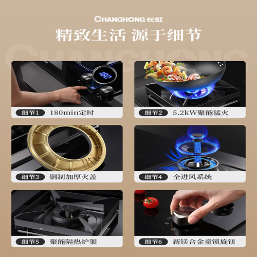 拥有144个高密度火孔设计,火焰喷射高,受热更加自然均匀,避免炒菜糊锅。搭载触控定时功能,长时间煲汤也不需担心。
