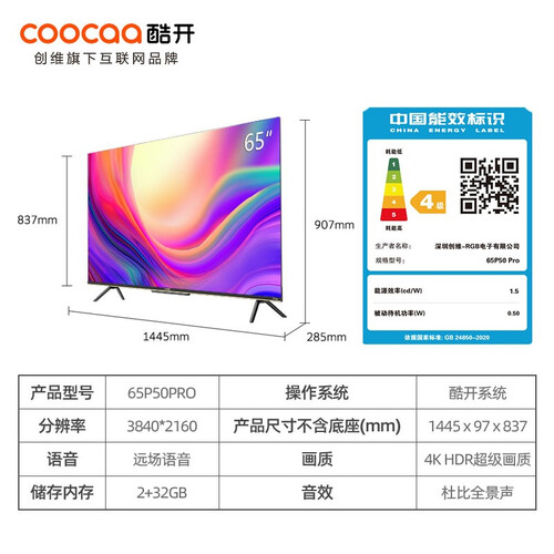 酷开 P70 全面屏电视