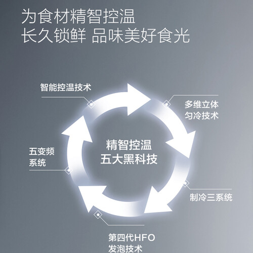 搭载变频系统,轻松掌握储鲜温度,免去繁琐调节步骤。拥有质感黑晶金属门,呈现高雅艺术外观,令人一见倾心。