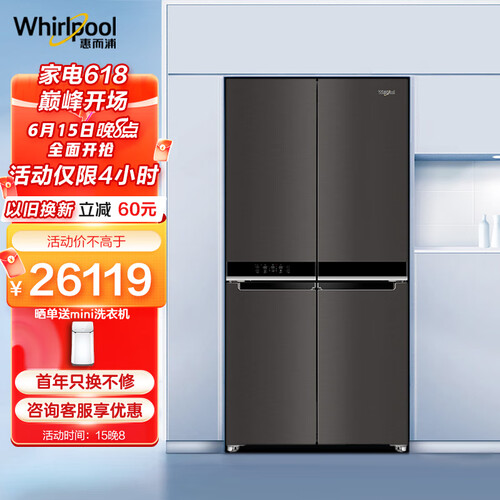 惠而浦 黑晶金属门冰箱
