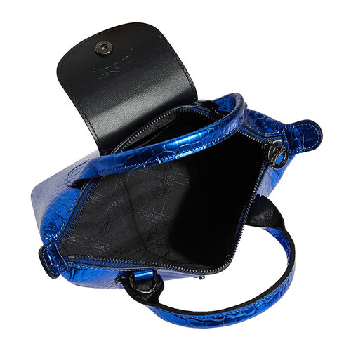 个性吸睛的蓝色单肩包,鳄鱼纹理的皮质包身,彰显时潮品位格调。顺滑易拉的拉链开合,配以中间翻盖按扣,给予物品双重保护。