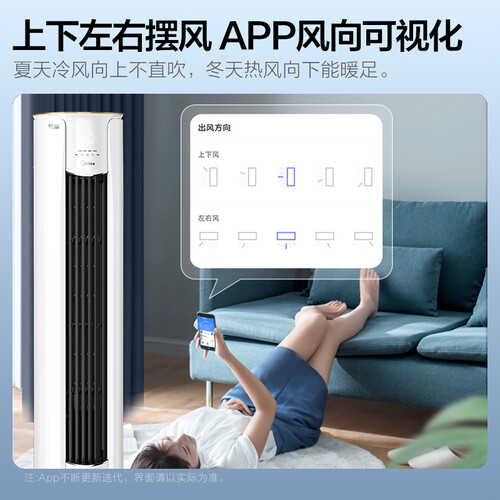 拥有大出风口的设计,配以上下左右摆风,可快速制冷热,舒适温度随开随有。配以优化风道设计,运行时噪音低,不扰眠。