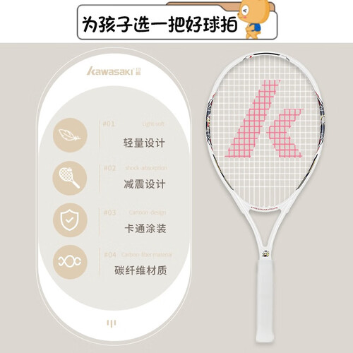 碳纤维材质打造的一体化球拍,强化球拍材质,轻量坚固。再搭配创意卡通图案,吸睛新潮,彰显十足的青春活力感受。