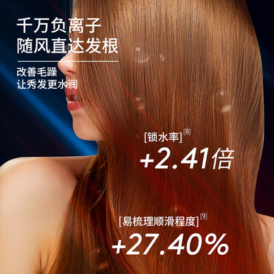 出风口面积增大,能均衡温度快速干发,搭载负离子发生器,中和头发中的正电荷,减少静电发生,让秀发更亮泽顺滑。