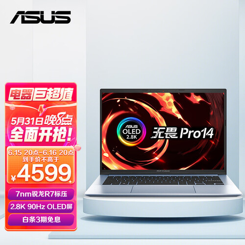 华硕无畏Pro14采用OLED屏,色彩艳丽真实,带来震撼感官体验。配置双风扇和双热管,在保持高性能运行的同时散热快速。