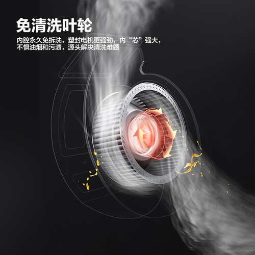 更近的吸烟口,搭配四面进风吸烟,油烟速排不拐弯,确保油烟畅通排出。采用22m³/min大吸力设计,瞬净油烟不呛鼻。