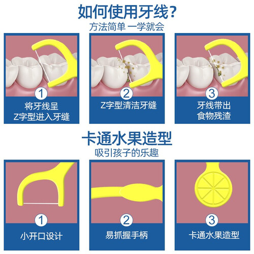 独立包装设计,收纳干净卫生。水果造型设计,吸引孩子注意力爱上洁牙。