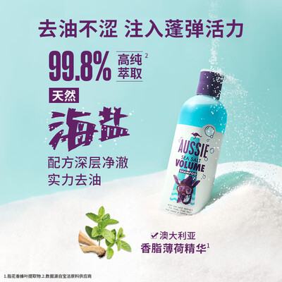 蕴含海盐精粹,健康温和配方,一点不担心带来伤害。去油控油性能好,缔造出蓬松的发质感受,尽显靓丽柔顺。