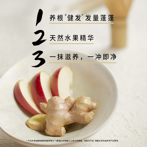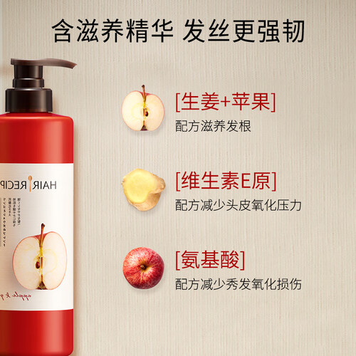 提取苹果机生姜精华,具有活性化合物,可以为秀发提供养分,强健发根,使用后可以明显感到掉发减少。苹果的酸甜香气,十分清新。