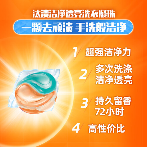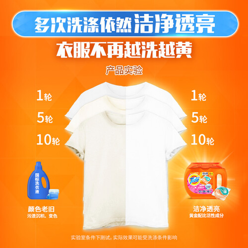 拥有卓效洁净力,轻松洗净油渍和汗渍,令衣物恢复洁净清新;协同3D护色因子,有效防串色,无惧深浅衣物混洗,助潮人随心搭配。