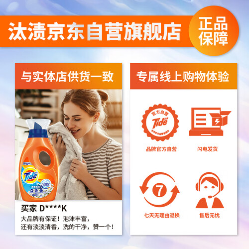 能全方位洁净污渍,并且还能有效除菌,贴心守护家人穿衣健康。洗后衣物散发清新百合香,淡雅不刺鼻,是精明辣妈心水好物。