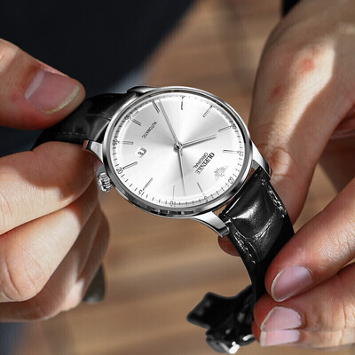 蓝宝石玻璃表镜,防腐耐刮不易磨损,读时一目了然,持久散发柔和光泽。纯净大开面设计,给人超乎所见的大气之感,十分扣人心弦。
