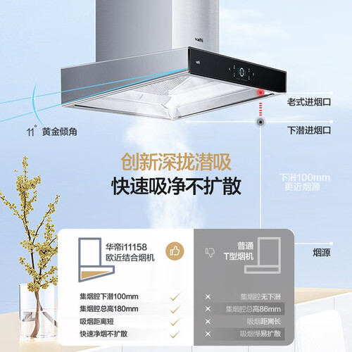 125mm深拢烟腔设计,有效增大拢烟体积,避免油烟四处逃窜。拥有飓风大吸力,无惧川香爆炒,厨房空气更清新。