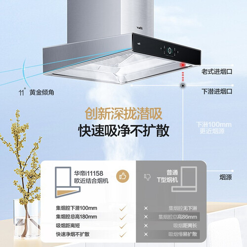 双重负压拢吸的设计,可以扩大拢烟范围,实现大面积快速净烟。46dB低噪静吸,静享清新烹饪环境,不影响家人的休息。
