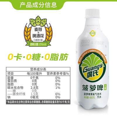 浓浓的菠萝味融入麦芽香,味道清甜自然,气泡丰富,冷藏后口感更清爽。不含酒精好喝不上头,啤酒风味口感,女生聚会也可放心喝。