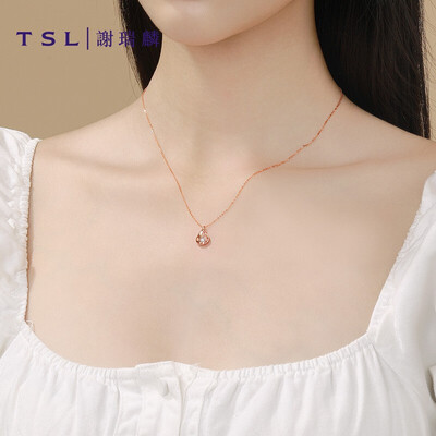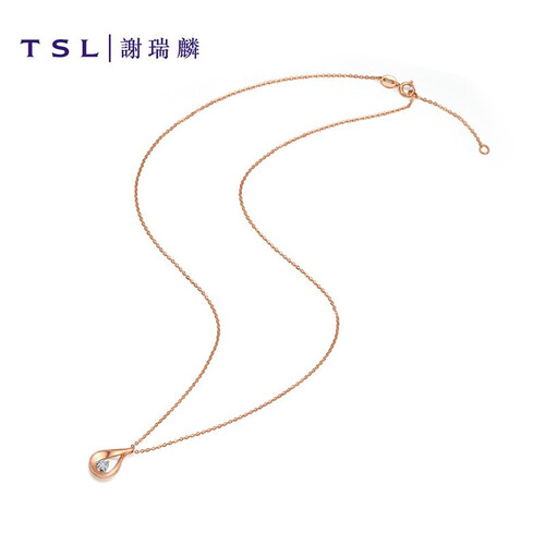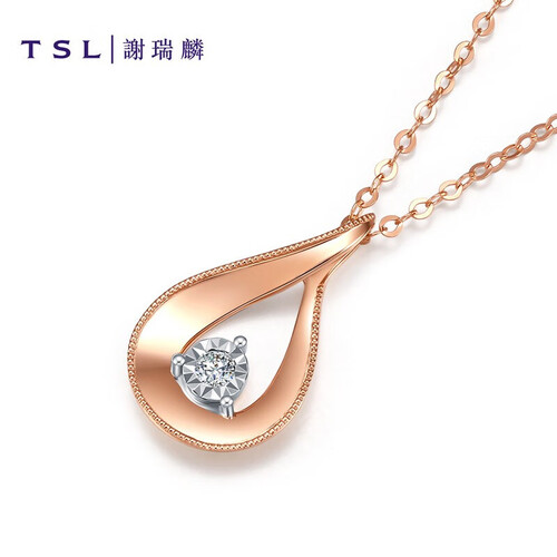 水滴造型的K金项链,款式优雅又大气,职场佩戴十分合适。温柔的玫瑰金色泽,佩戴后凸显肌肤白皙。