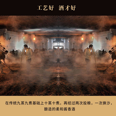 精心酿造酒体清澈透亮,带有细腻的酒花,酒体能明显挂壁,口感醇厚,带有柔和的酱香气,入口绵柔回味无穷。