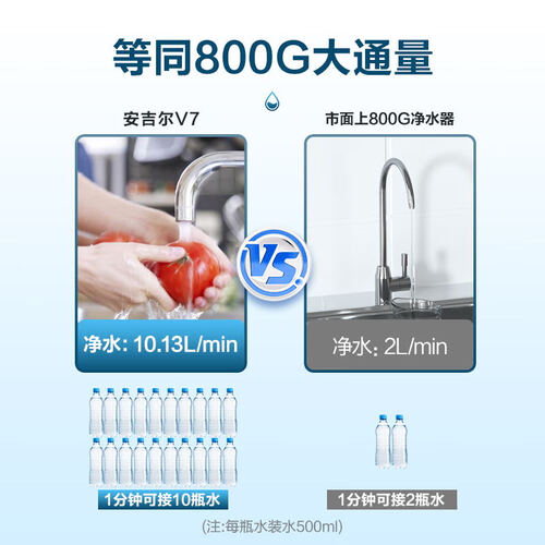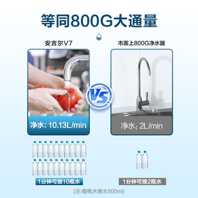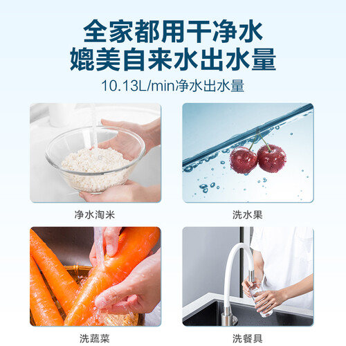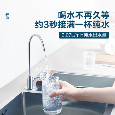 创新饮用分离双出水,纯水孩子安心饮,净水全家放心洗,满足全家用水需求。2.07L/min出水流速,等同于800G大通量。