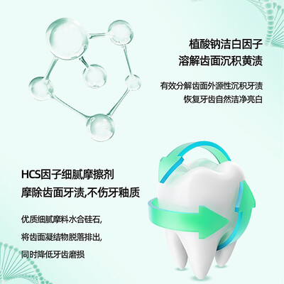 碧玺宝石成分,吸附口腔异味分子,净化口腔环境。植酸钠洁白因子,能溶解牙齿表面沉积的牙垢,牙齿恢复自然洁净。