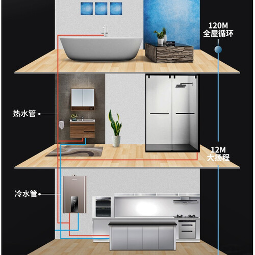 搭载智能增压系统,出水流量大,轻松应对多点供水问题。具有智能定时预热功能,提前加热供水,随享舒适沐浴。