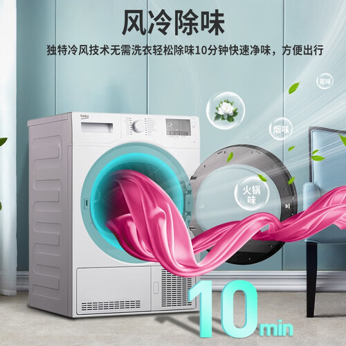 干净的白色外观设计,视觉效果更佳,给人一种优雅简约的感觉,轻松匹配不同家居。冷凝式烘干技术,低温烘干,衣物不易受损。
