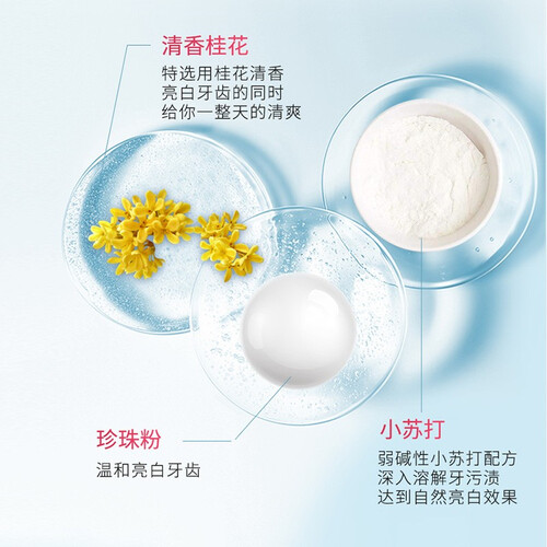 蕴含竹粉和珍珠粉,补充牙齿所需营养,温和洁白牙齿,配合水合硅石和小苏打成分,深层清洁去除牙渍,不伤牙面和牙周组织。