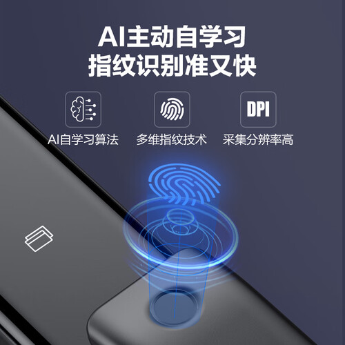 搭载AI自学习半导体指纹模块,识别快,越用越精准。设计多种开锁方式,全家老小轻松使用,灵活开锁无压力。