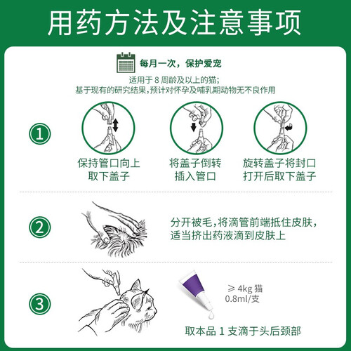 适用于大型猫猫的驱虫滴剂,只需要滴在猫咪皮肤的表面,就可以实现外驱,避免被叮咬。而且成分比较温和,不会刺激。