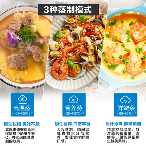 蒸汽嫩烤,口感更细腻,多功能,能满足不同人群的使用需求。45L大容量,一次就能烹饪较多食材,适合聚会时使用。