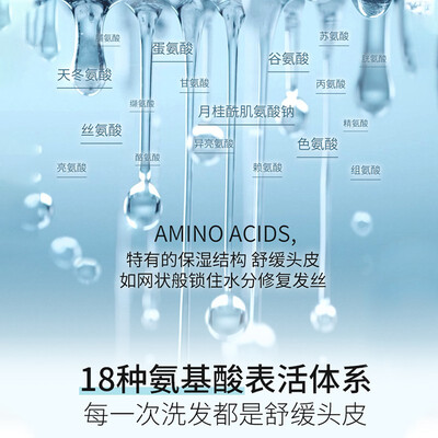 蕴含18种氨基酸、金缕梅提取物等7种植物成分复配,温和清洁头皮清爽控油,令发丝根根分明,修护毛躁,打造蓬松饱满发量。