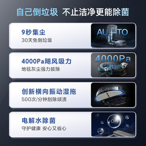 搭载700W大功率电机,吸力可以瞬间达到19000PA。电解水除菌,不需要额外购买消毒剂和除菌抹布,减少使用成本。