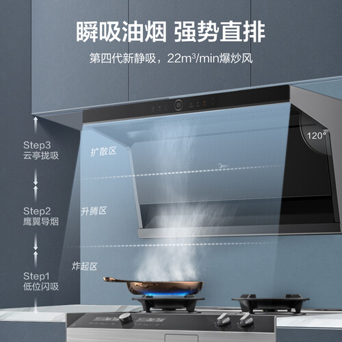 搭载有直流变频4.0强劲内芯,能够在使用时爆发450Pa静压,横扫油烟。主动降噪系统抑制噪声,低噪声享受烹饪。