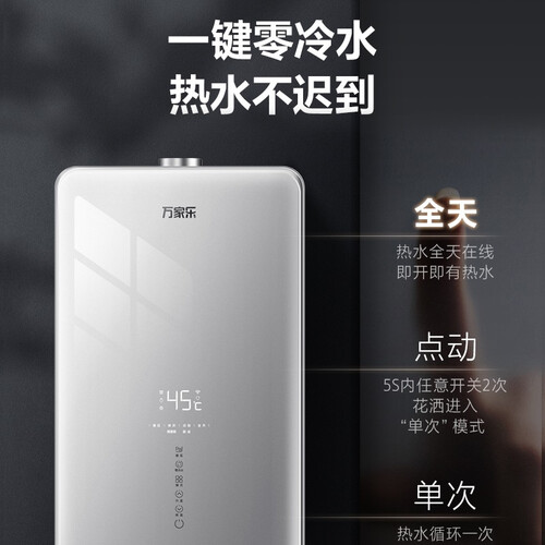 启停也零冷水的燃气热水器,关上后再打开水温依旧保持恒定。采用高能瞬时增压技术,家里的每个出水点都能有充沛的水量。