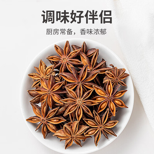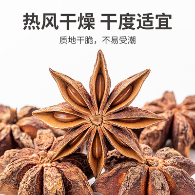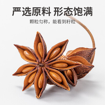 热风干燥手工挑选的大茴香,平滑有光泽,气味芳香,味道辛辣。日常烹饪肉食,可起到去腥提鲜,使肉质香浓馥郁的作用。
