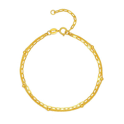 六桂福 双层圆珠K金手链