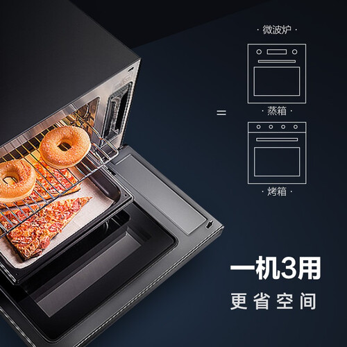 拥有高温蒸汽烤功能,烤出来的食材健康不油腻。采用中考议题的设计,一机抵3台,制作花样美食不受限。