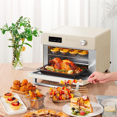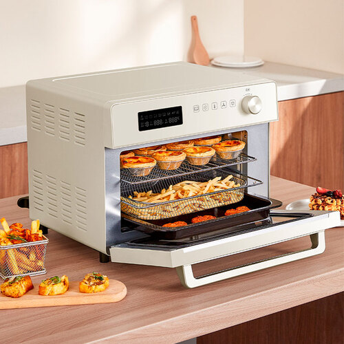 它拥有自动预热功能,预热好后会蜂鸣提示,省心又智能。内置360°立体烘烤技术,热量能够均匀穿透食材,烹饪更有效。