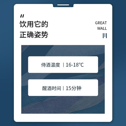 酒体呈紫红色,色泽更鲜明,口感圆润平衡。拥有甘草、果香、矿物等香气,味道更丰富,余味更悠长,成熟男人的送礼优选。