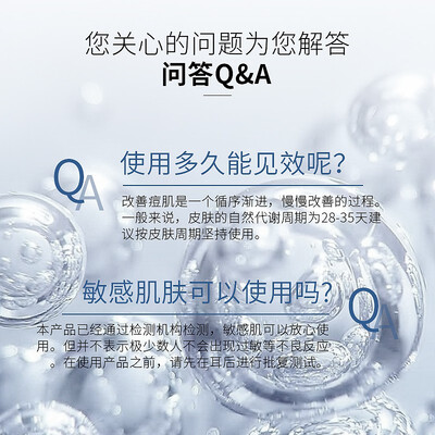 甄选烟酰胺精华成分,为肌肤提供充足水分补充营养,平滑肌理。修护痘肌,为肌肤加成修护舒缓,令皮肤焕活嫩滑。